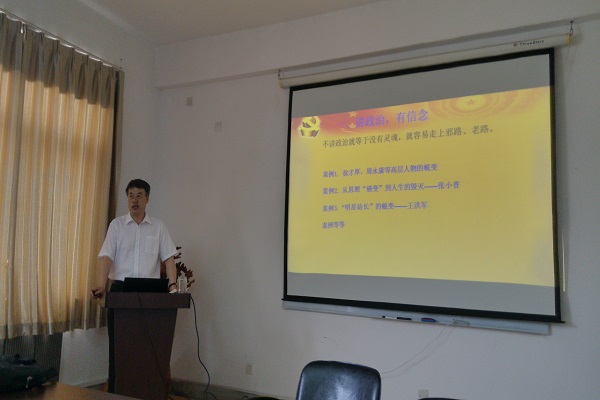 按照校党委和学院党总支“两学一做”学习教育实施方案的总体安排,6月29日下午,海洋科技与环境学院党总支书记张国胜在学院会议室为全体师生党员讲党课,党课题目为“践行‘四讲四有’,做一名合格党员”。
