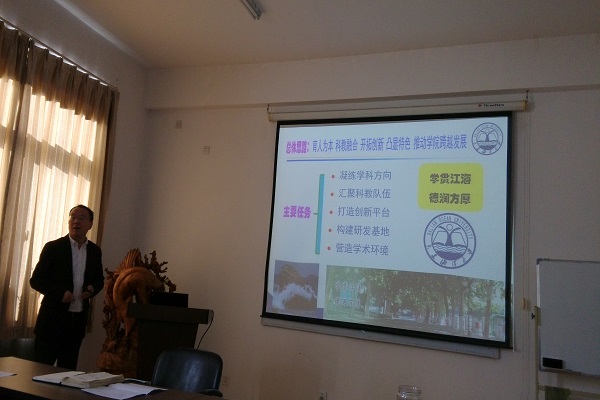1月15日,海洋科技与环境学院在会议室召开2016年度工作总结会,刘鹰院长代表院领导班子对2016年学院工作做了总结汇报,学院全体教师参加会议。