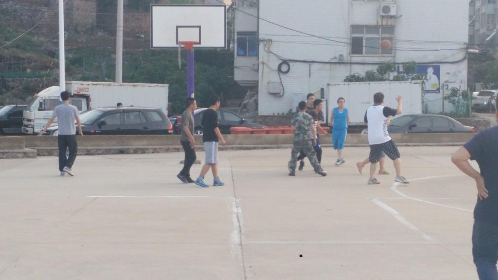 实习虽苦但海渔师生亦懂得劳逸结合,下班的夏日傍晚经常能看到导师邢彬彬带领同学们在简陋的球场打篮球,在此同学们舒缓一天的疲惫,释放工作的压力,挥洒汗水的同时也加深了同学情谊。