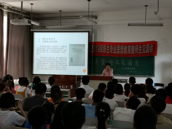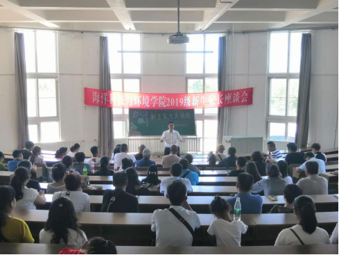 在师生见面会上,作为主讲人刘鹰为大家带来海环新生第一课——“过一场富足的大学生活”。课堂由大学生学习的重要性、如何学习好、明确学习的目的、如何让大学生生活富足,大学生活需要注意的安全事宜以及如何过好集体生活六部分组成。在分专业交流环节,学院五个专业方向的7位老师分别就专业研究内容、前景及课程设置等相关方面向新生们进行了介绍,第一时间帮助大家了解了自己的专业特点,明确了未来的方向。