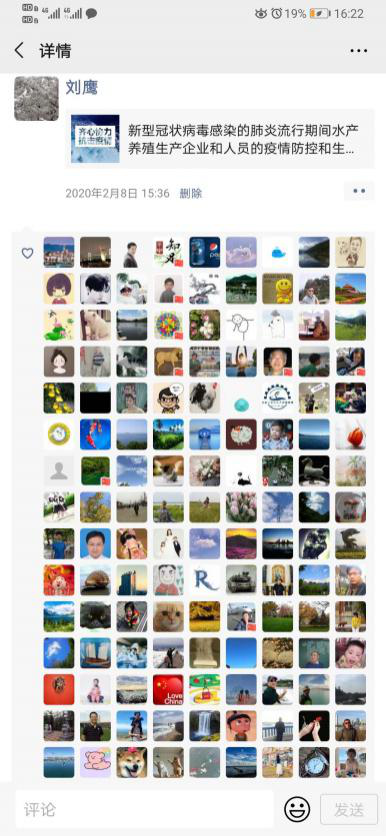在新冠肺炎疫情蔓延,水产养殖业生产遇到巨大困难的形势下,院长刘鹰发挥水产专业特长和国家农业产业技术体系设施养殖岗位科学家优势,针对疫情第一时间撰写网文《新型冠状病毒感染的肺炎流行期间水产养殖生产企业和人员的疫情防控和生产工作建议》,提出了加强防疫防控、备好生产物资、做好应急处置、加强养殖管理、开辟网上购销等具体建议和措施。针对天津、江苏部分企业养殖产品滞销等问题,刘鹰积极联系,推送销售信息,帮助企业销售了万余斤对虾;针对大连部分河豚鱼养殖企业近期病害严重等问题,刘鹰及时组织编写了《红鳍东方鲀养殖阶段主要病害的病因分析及防治措施》,并通过电话、视频、微信等方式,远程指导企业技术人员进行病害防控;并对辽宁、浙江、陕西、广东等地10余家水产企业的春季生产、池塘水质管理、水产苗种采购、养殖品种选择、病害防治等技术问题进行了远程指导和技术咨询。