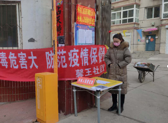 本科生党员王侯宇在辽宁省凌源市某小区做抗疫志愿者