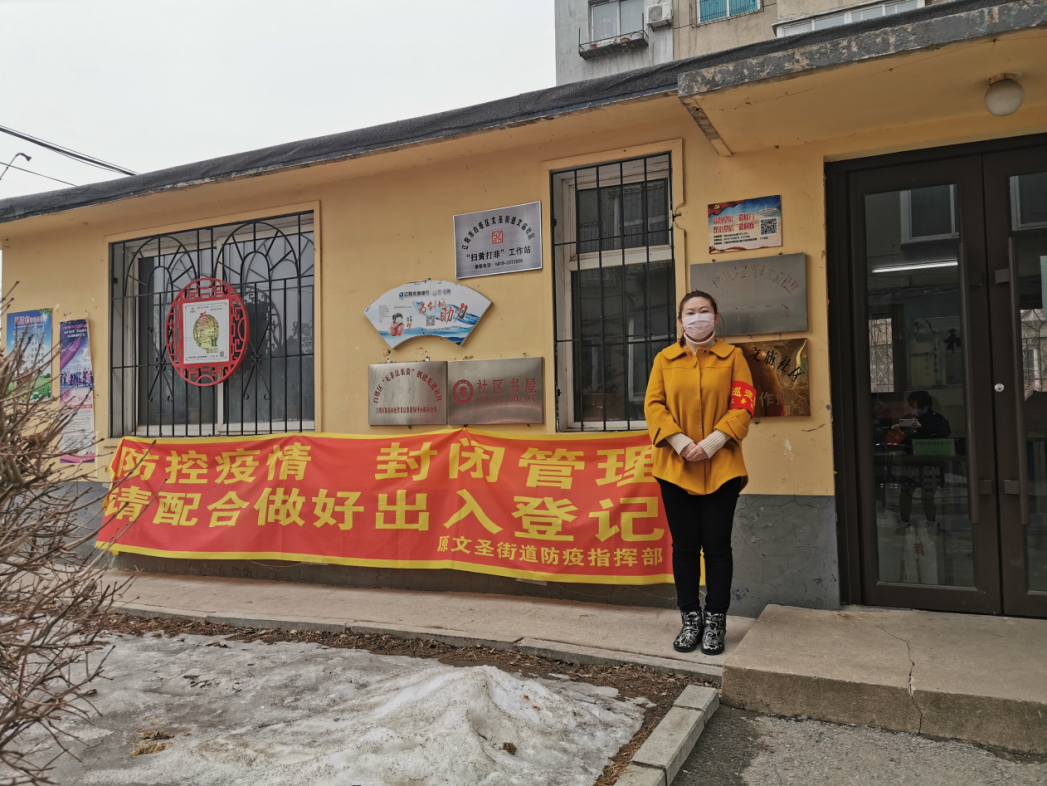 研究生党员薛碧凝在辽宁省辽阳市白塔区文圣街道办事处做抗疫志愿者