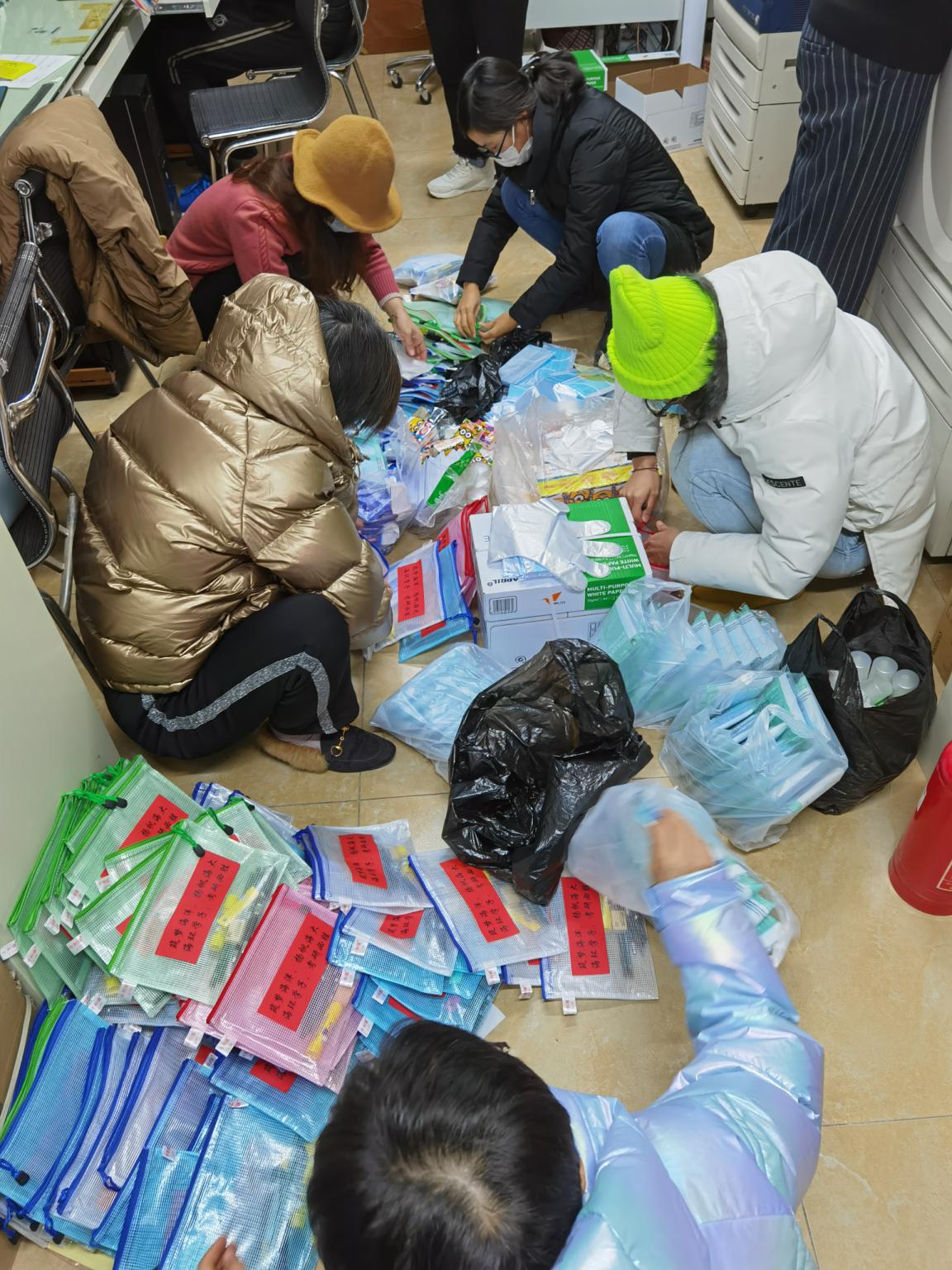天气再冷也阻挡不了老师们给大家准备应试袋的热情,在寒风中排队检测准备监考的“海师”们,挤出时间细心地为考研宝宝们准备着物品,红红的字条上饱含老师们最深情的祝福!