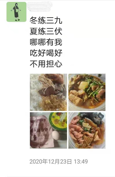 隔离的滋味不好受,但是看着辅导员老师们每天不辞辛苦,按时送到的三餐,又觉得暖暖的,只要大家齐心协力,病毒也没那么可怕。