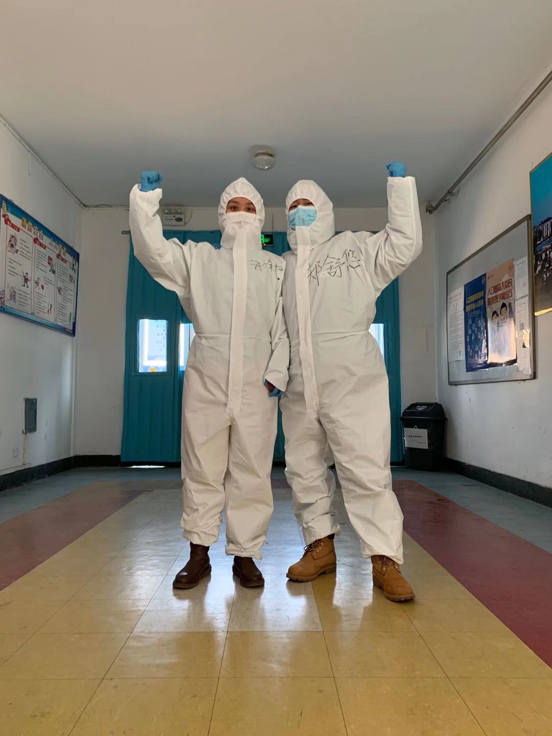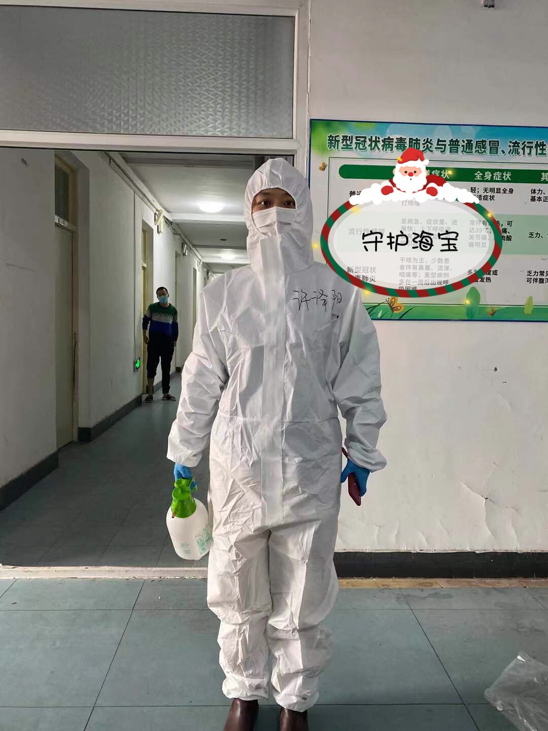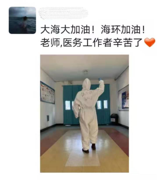 与此同时,各类紧张的消杀工作也在紧锣密鼓的展开,陪在大家身边的辅导员老师们除了马不停蹄订餐、送餐,还要消毒杀菌、数据统计,最重要的是安抚“海宝”的不安和恐惧,白色防护服下面的她们看了好心酸,却让大家感到无比安心。