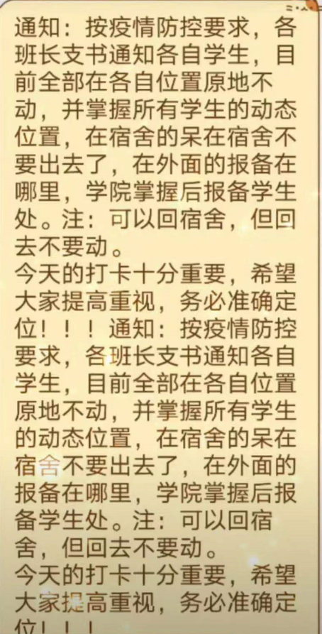 本次隔离始于12月21日晚间辅导员老师的这个通知,当时大家肯定心理怕怕,不知道发生了什么?