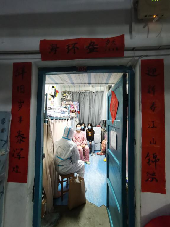 2020年的最后一天,“海宝”们也动起来了,新年新气象,宿舍大扫除肯定少不了,辞旧迎新嘛 ,听说还有红袜子,一会还得泡泡脚,那是什么?好久没吃到的新鲜水果?嘻嘻,呜呜……没想到隔离中的元旦也可以这么温暖有趣。