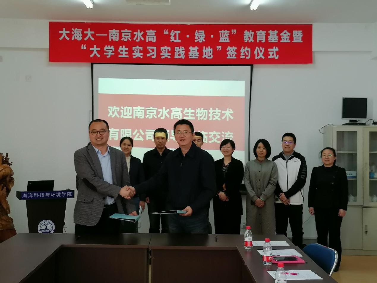 海洋科技与环境学院与南京水高生物公司举行“红·绿·蓝”教育基金暨“大学生实习实践基地”签约仪式