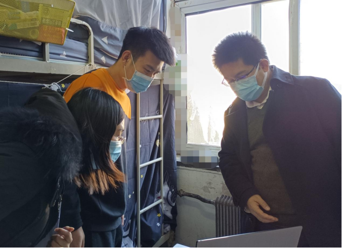 11月19日,海洋科技与环境学院副院长(主持工作)宋军、教师王林慧在住校期间深入学生寝室指导学生课程学习内容。将线上教学与线下指导、答疑相结合,督促学生学好专业知识,促进学院学风建设。