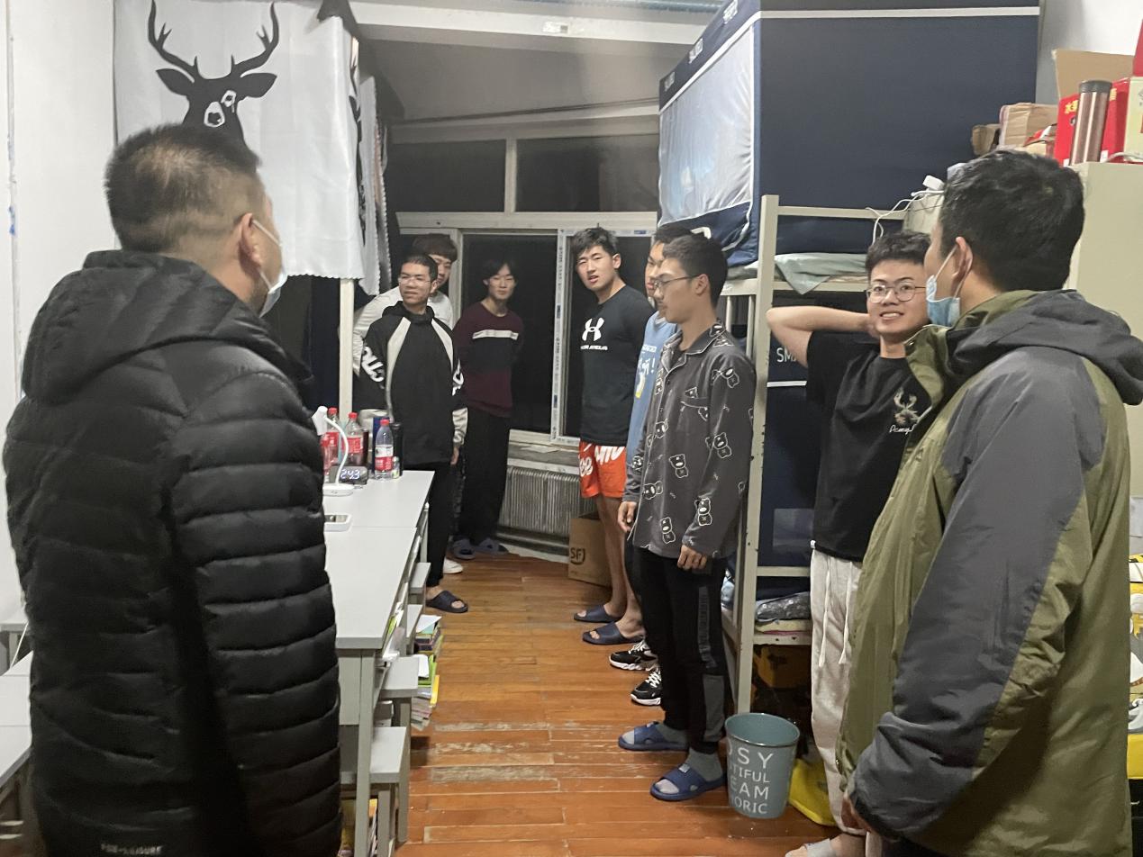 一天繁忙的工作结束了,他拖着疲惫的身体回到自己在校区的临时住所,回想着一天走访寝室解决的问题、学生认真学习的画面、回想着学生弄懂的全新知识点等等,他心理踏实、快乐无比,他将对学生的关爱之情浓缩于防疫的各项日常工作中。