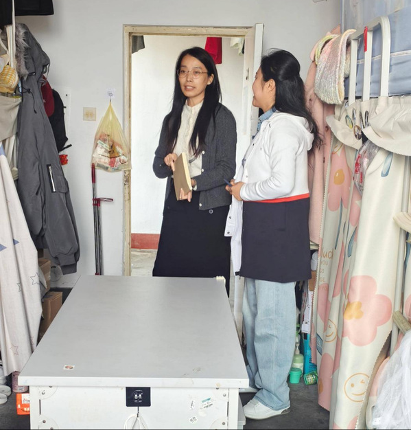 班会结束后,刘冰冰一行走进学生寝室,仔细查看环境卫生、用电安全及内务整理情况,并与同学们亲切交流,了解他们的日常学习和生活状态。她强调,整洁有序的寝室环境是良好学习状态的重要保障,希望同学们共建文明寝室,营造温馨和谐的生活氛围。