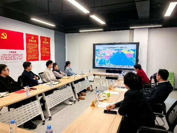 分享环节支部党员田洁和郭俊如分别结合自身工作学习体会表示要将理论学习转化为推动学科建设海洋数据服务国家建设工作主动作为动力